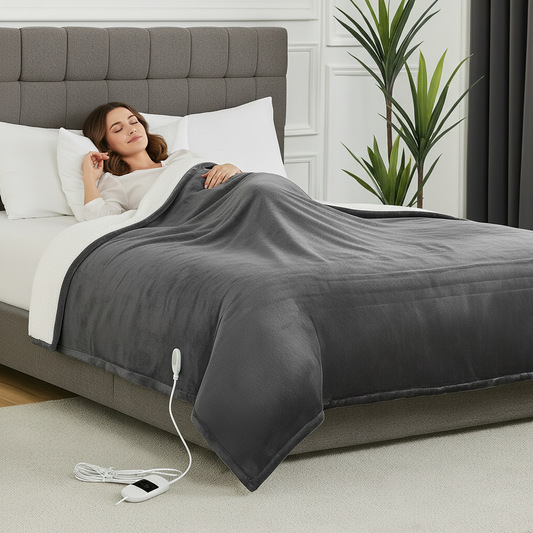 Comfort Cove - Plush Flannel & Lambskin Electric Heated Blanket (9-Level Heat • 12-Hour Auto-Off • Over-Heat Protection)
